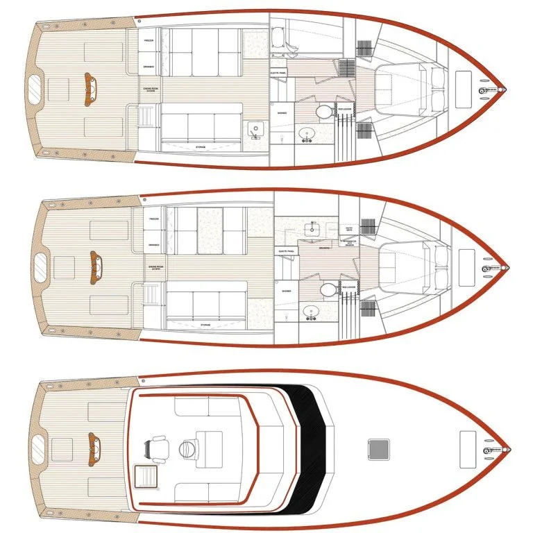 Below, you’ll find a choice of proven layouts—each one dialed in through thousands of hours in design and engineering—so you can customize your 43-foot sportfishing boat to your kind of adventure while leaning on our combined lifetimes of experience on the water.