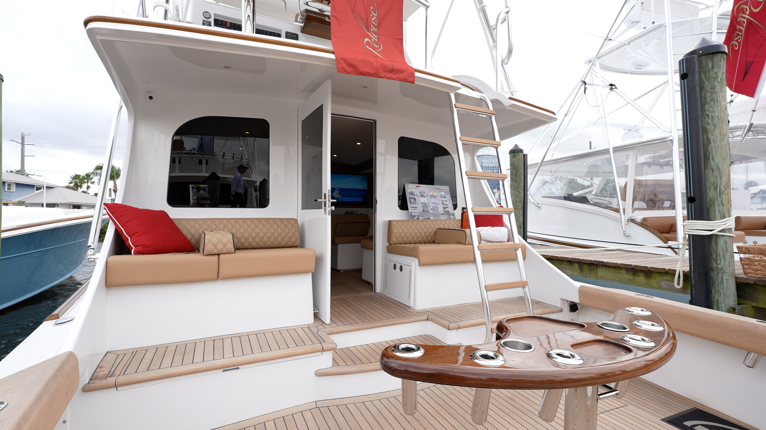 - Lazarette hatch with access to steering, trim tabs, drains and pumps