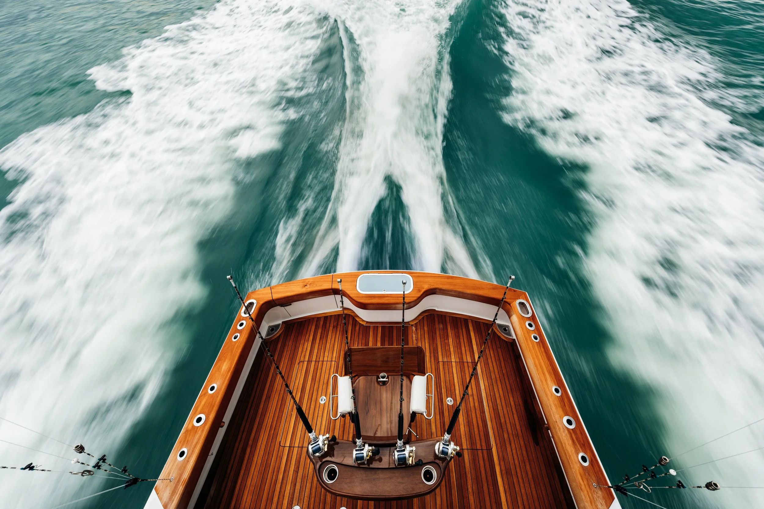 Several items come to mind, including gunnel and deck heights, plentiful storage (fish boxes, tackle storage, livewell space, storage for gaffs, rod storage, and more). Gunwale heights are important so you can lock your knees under the gunwale when fishing stand-up in rough seas. And deck height matters because you need to able to reach the surface of the water while standing in the ‘pit, for handling fish at boat-side. If you have a fighting chair, you want it mounted close enough to the transom so the rod tip can clear both corners of the stern, but far enough away so the wire man can easily move between the footrest and the back of the boat.