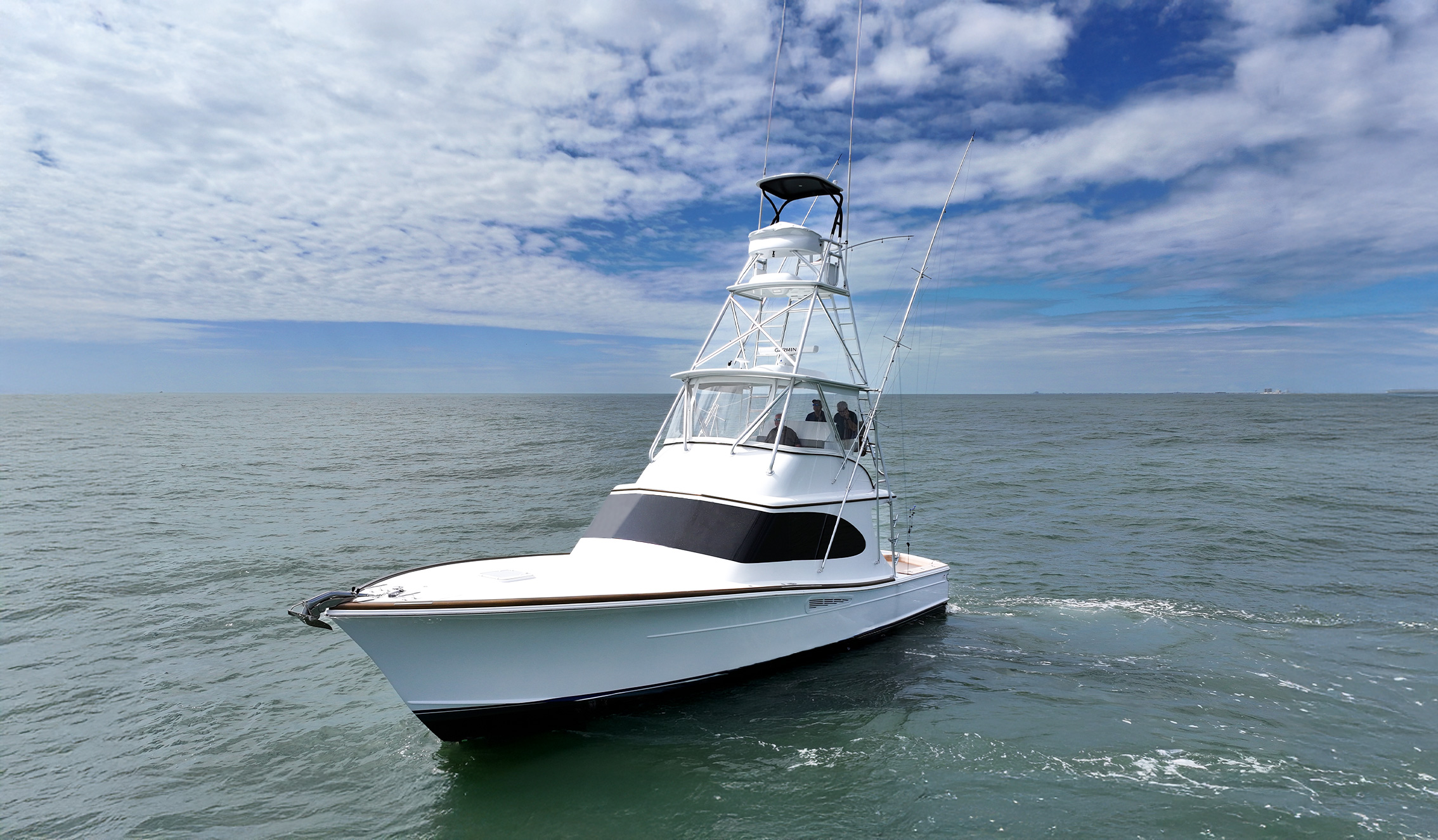 Up top, the flybridge is all about command. Sightlines are wide open, helm controls fall under hand, and there’s space to ride with your crew without clutter. Add a tower and you’ve got the ultimate lookout for FAD fishing, bait balls, or finding that one set of birds everyone else missed.